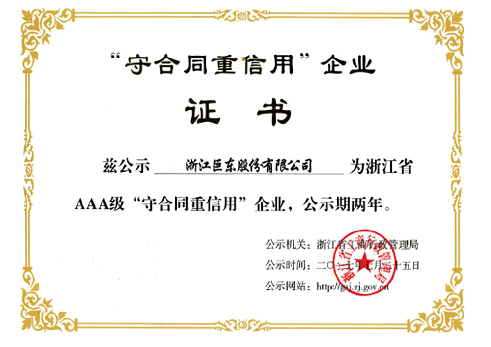 2017年浙江省AAA級守契約重信用企業(yè)