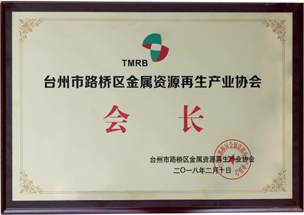 臺州市路橋區(qū)金屬資源再生産業(yè)協(xié)會會長